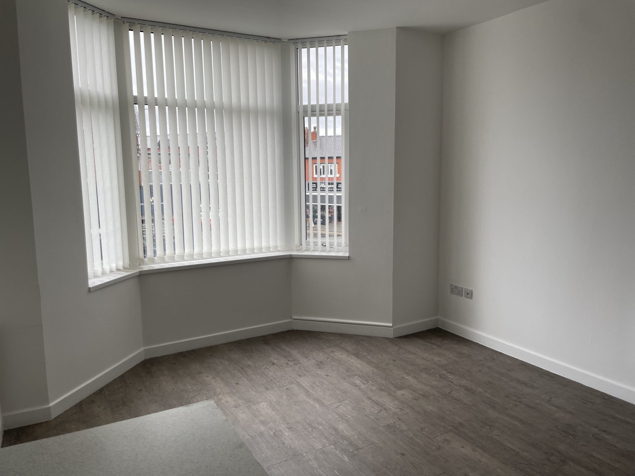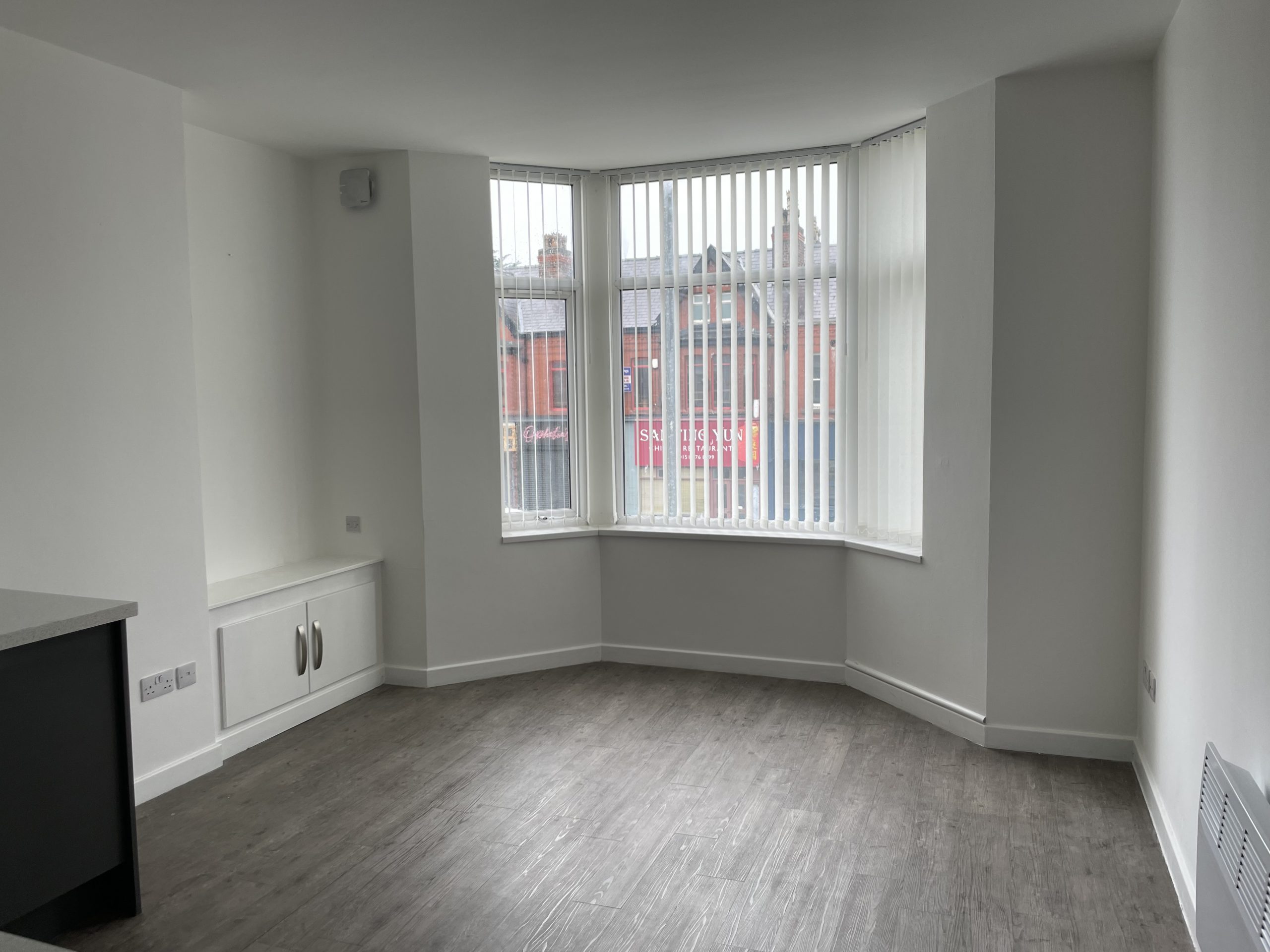 This amazing 2 bedroomed apartment gives you modern living within a traditional building. A full modernisation programme had benefitted the property with a modern kitchen and bathroom. The living room offers an open plan layout with the kitchen highlighted with the large living room window. located on the first floor of this converted double fronted building which houses five flats in total with a view over Crosby road. The property is all electric and has been recently painted with plain white walls and grey carpeting giving a bright modern feeling. The kitchen has all you need with oven, hob, extractor, fridge, freezer and a space with plumbing for a washing machine. the modern bathroom has a walk in shower, sink and WC.